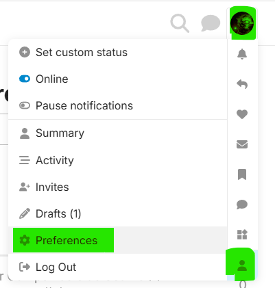 Go to your Profile: Click your account icon, then click the Profile (the little people icon) and then click the Preference menu item
