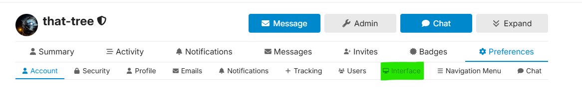 Open the Interface page