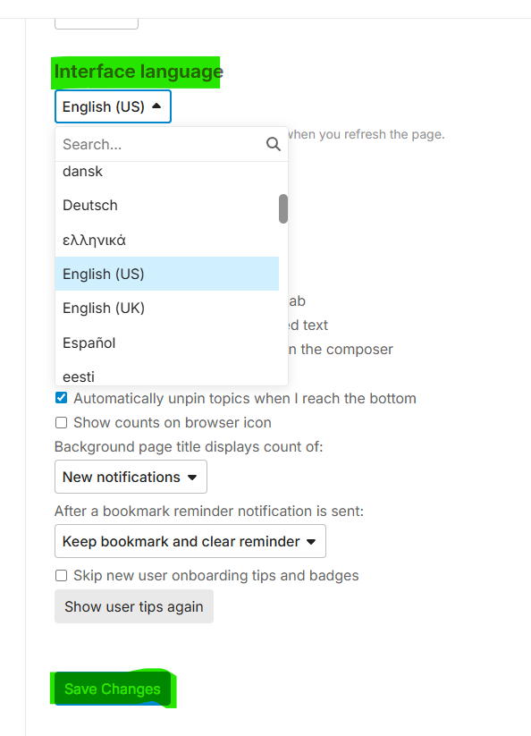 Pick the right language for yourself and “Save Changes”