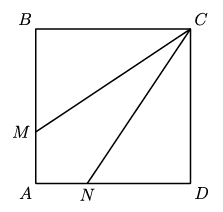 Square ABCD has sides of length 3. Segments CM and CN divide the square’s area into three equal parts. How long is segment CM?
